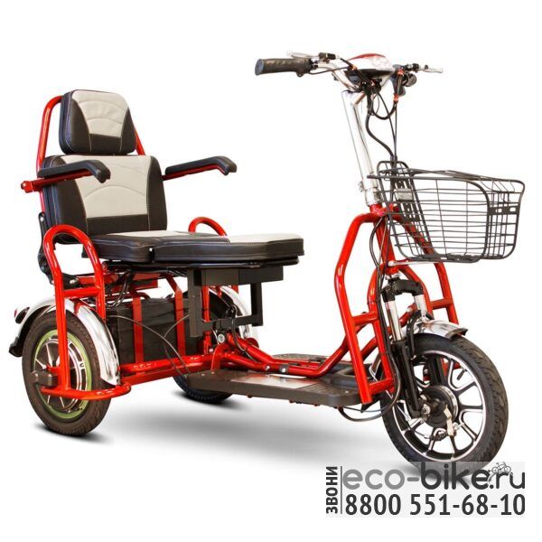 Электрические трициклы серии Адъютант - это комфортное средство передвижения для города, загорода, для людей любого возраста, а главное удобное и бюджетное средство для людей с ограниченными возможности. Модели серии Адъютант от ELBIKE имеет главное преимущество перед большинства аналогов, тем что укомплектованы литий-ионным аккумулятором весом 4,5 кг, а не свинцово-кислотной весом 18 кг, что значительно облегчает вес трицикла и дает ему ряд преимуществ: в пробеге, сроку службы. Еще одна особенность трицикла - возможность движения, как вперед, так и назад, при движении назад трицикл издает звуковой сигнал для предупреждения окружающих. У трицикла легко складывается рулевая стойка и сиденье, что позволяет его с легкостью перевозить в багажнике автомобиля. Спереди и сзади имеются вместительные корзины для перевозки необходимых предметов, а мягкое просторное сиденье с подлокотниками сделает вашу поездку максимально комфортной