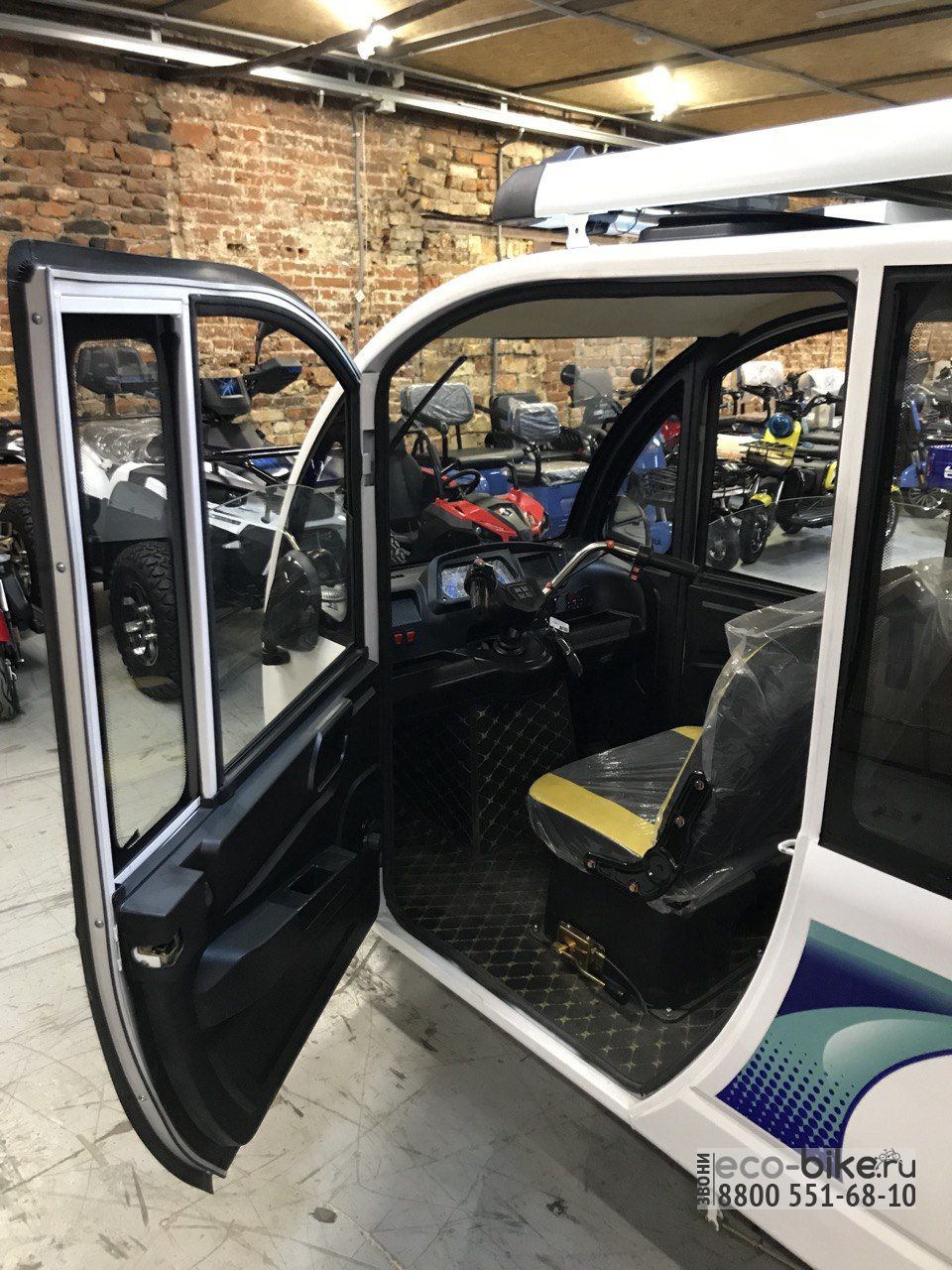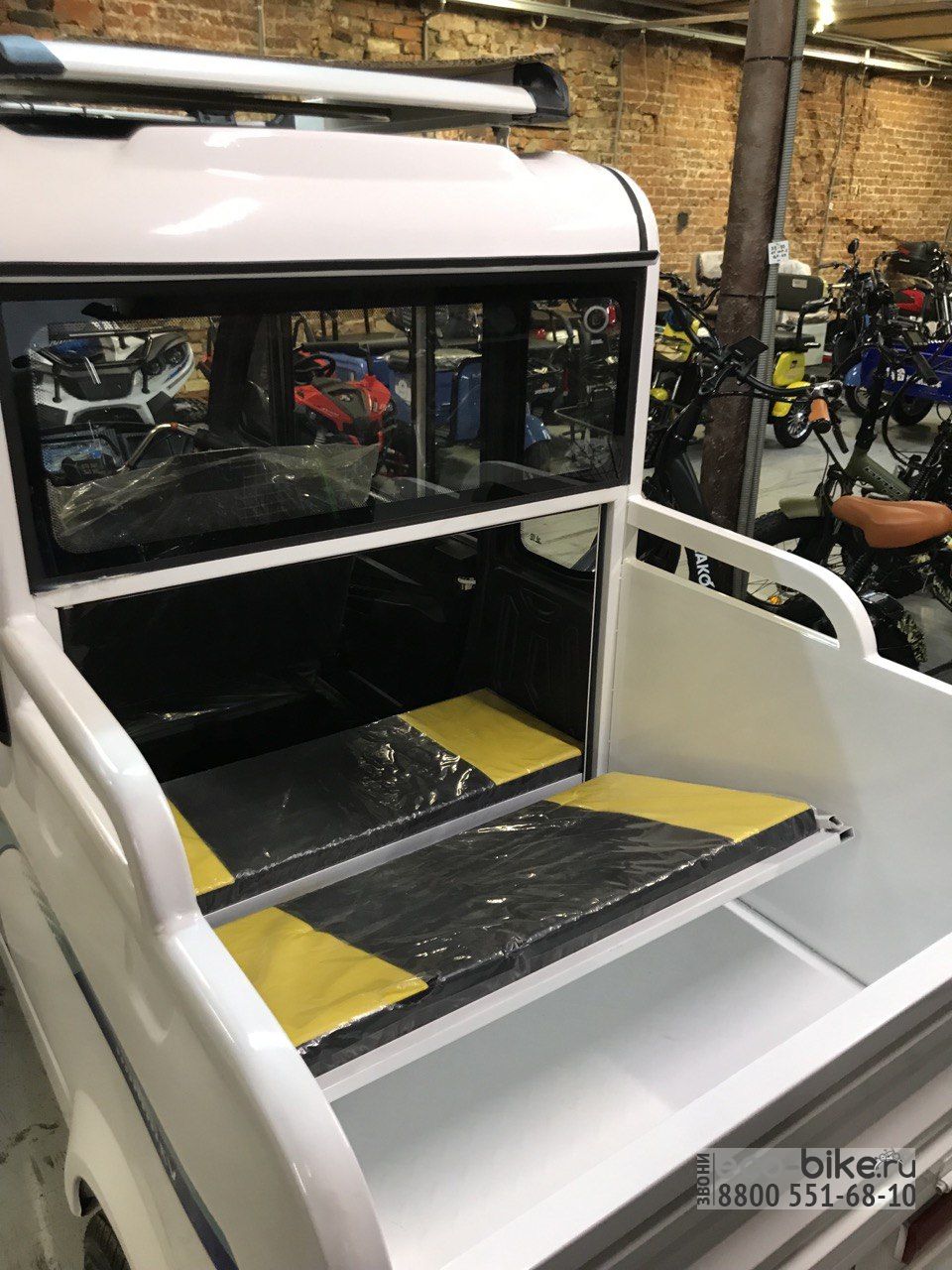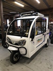 • крыша защищает пассажиров электрического трицикла от солнца и дождя;